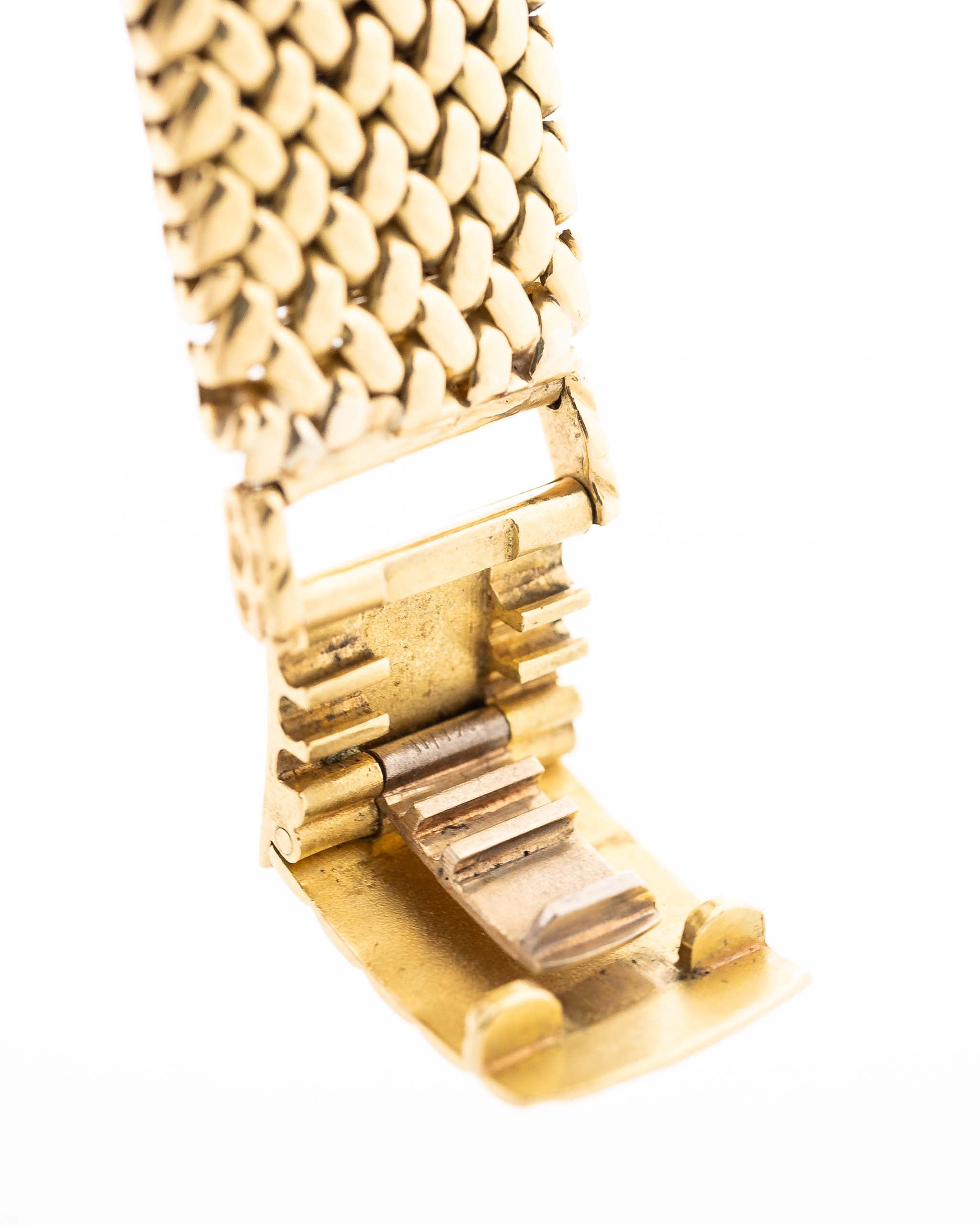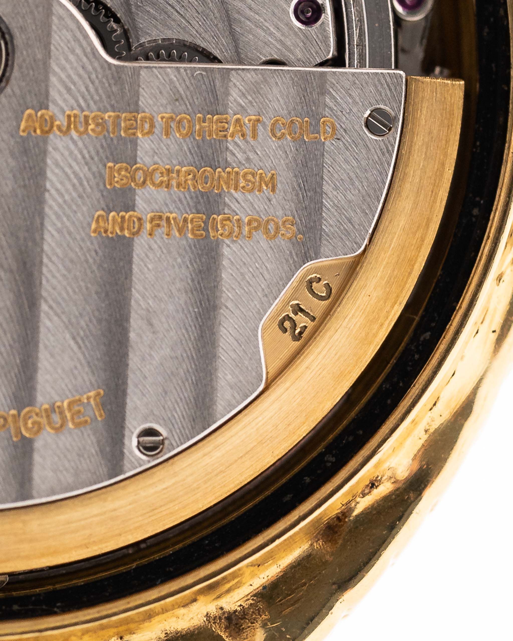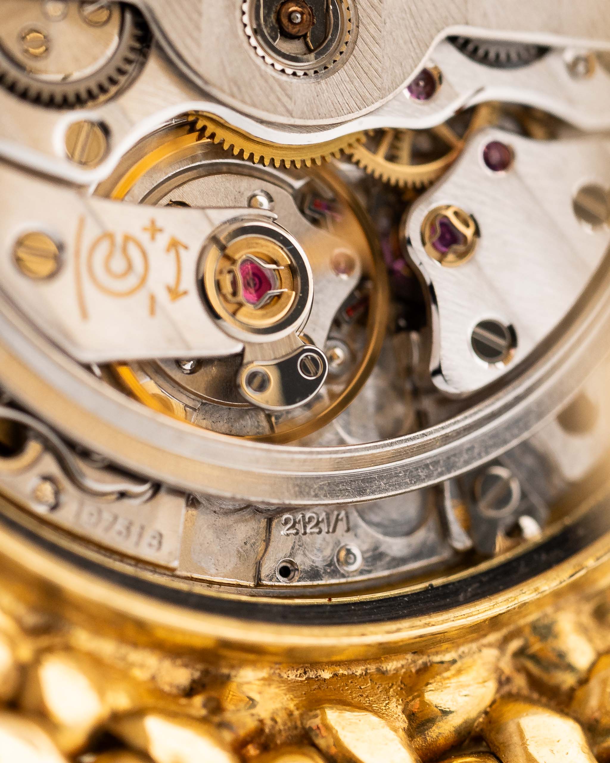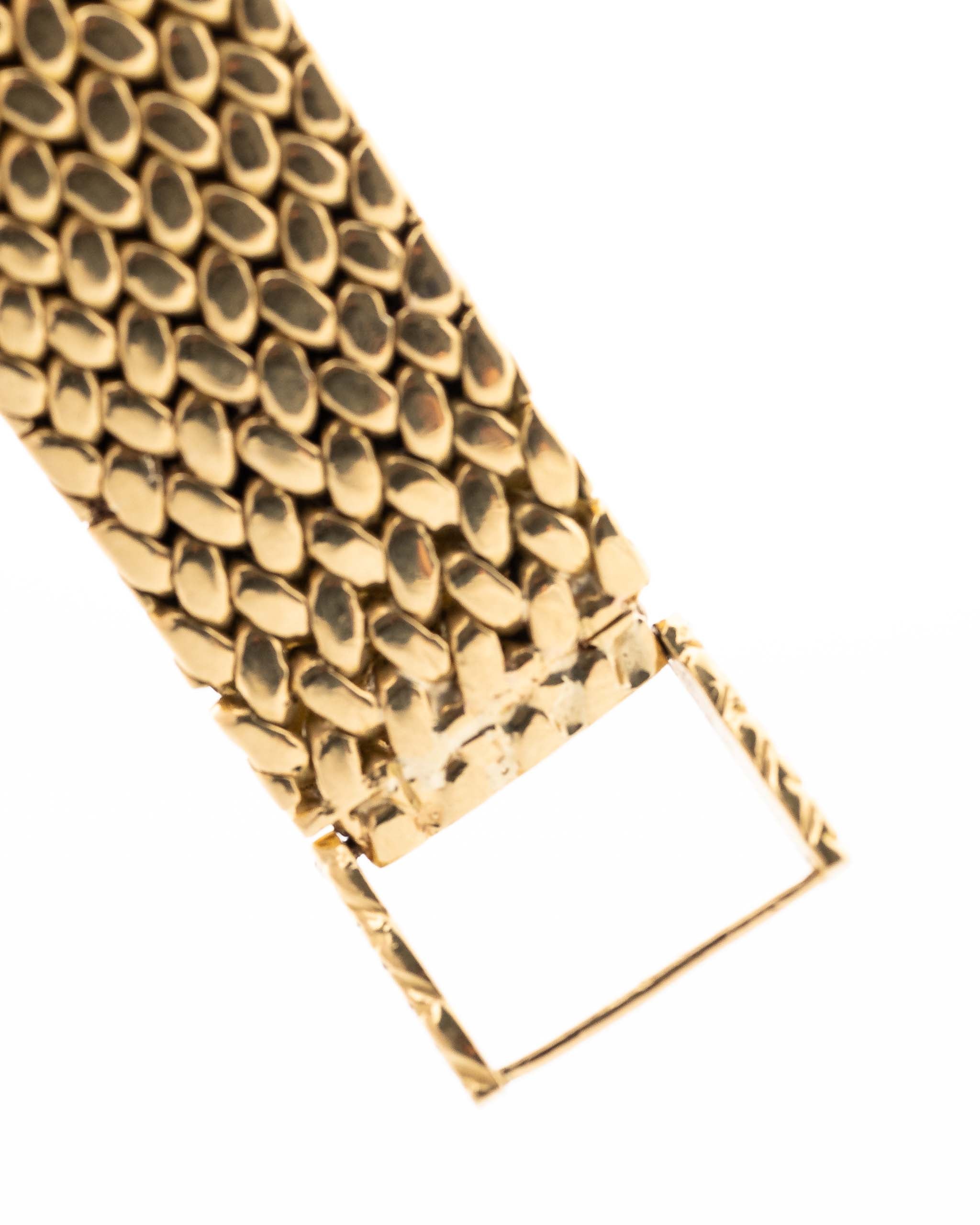 The heavy 18k yellow gold case measuring 35 mm in diameter, is in sharp condition and seamlessly integrated into a braided bracelet, earning the “Cobra” nickname due to its resemblance to a snake’s scales. The icing on the cake are the 11 diamond hour markers. Inside we have the reliable automatic calibre 2121/1 from Audemars Piguet.