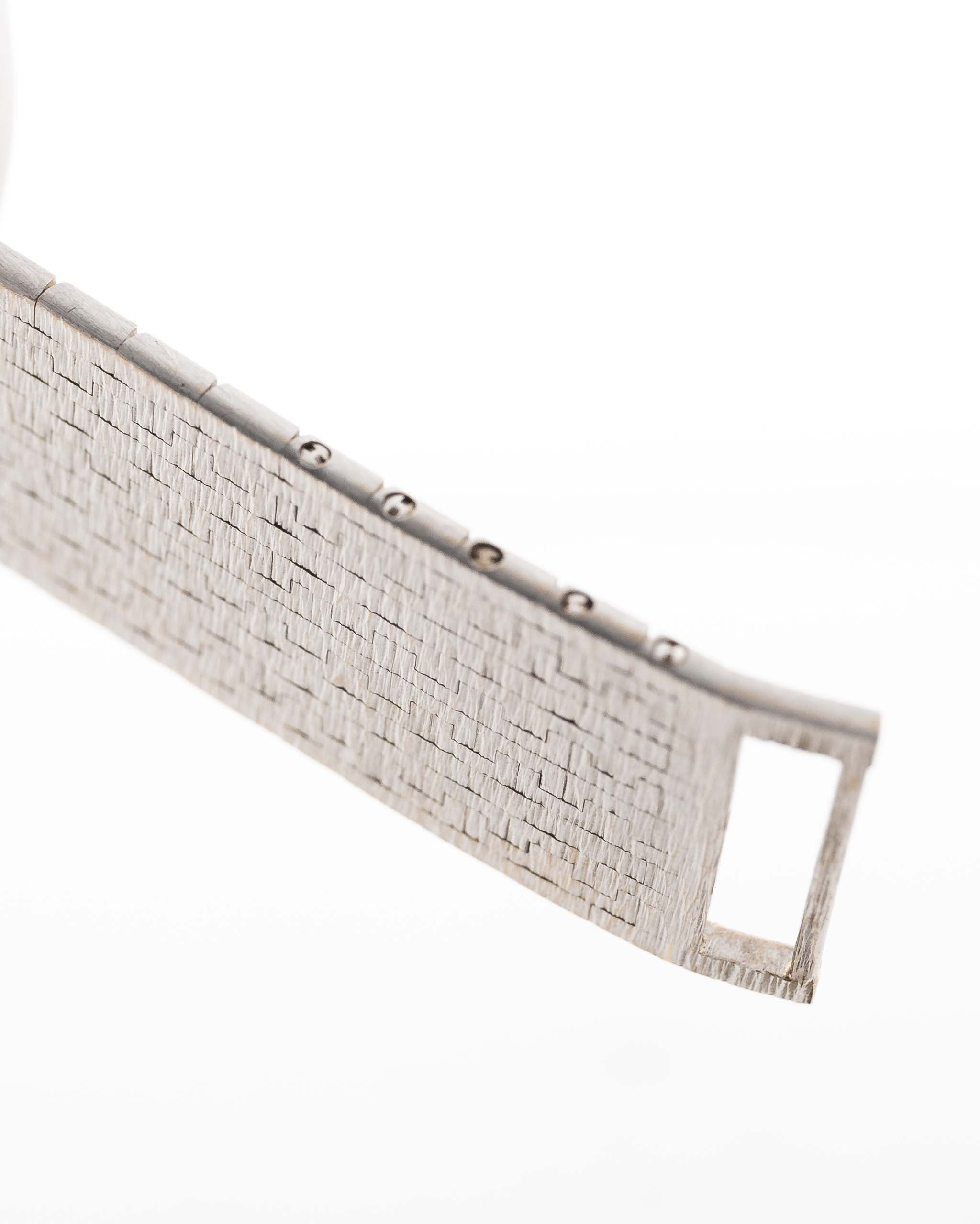 This Piaget took our breath at first sight. This geometric forms combined with the forged 18k white gold bracelet, Onyx and Lapislazuli stone dial with factory diamond setting on dial and bezel, alpha handset and classic Piaget logo are true art. This watch is carrying 175 diamonds in total – 120 on the dial and 55 on the bezel.
