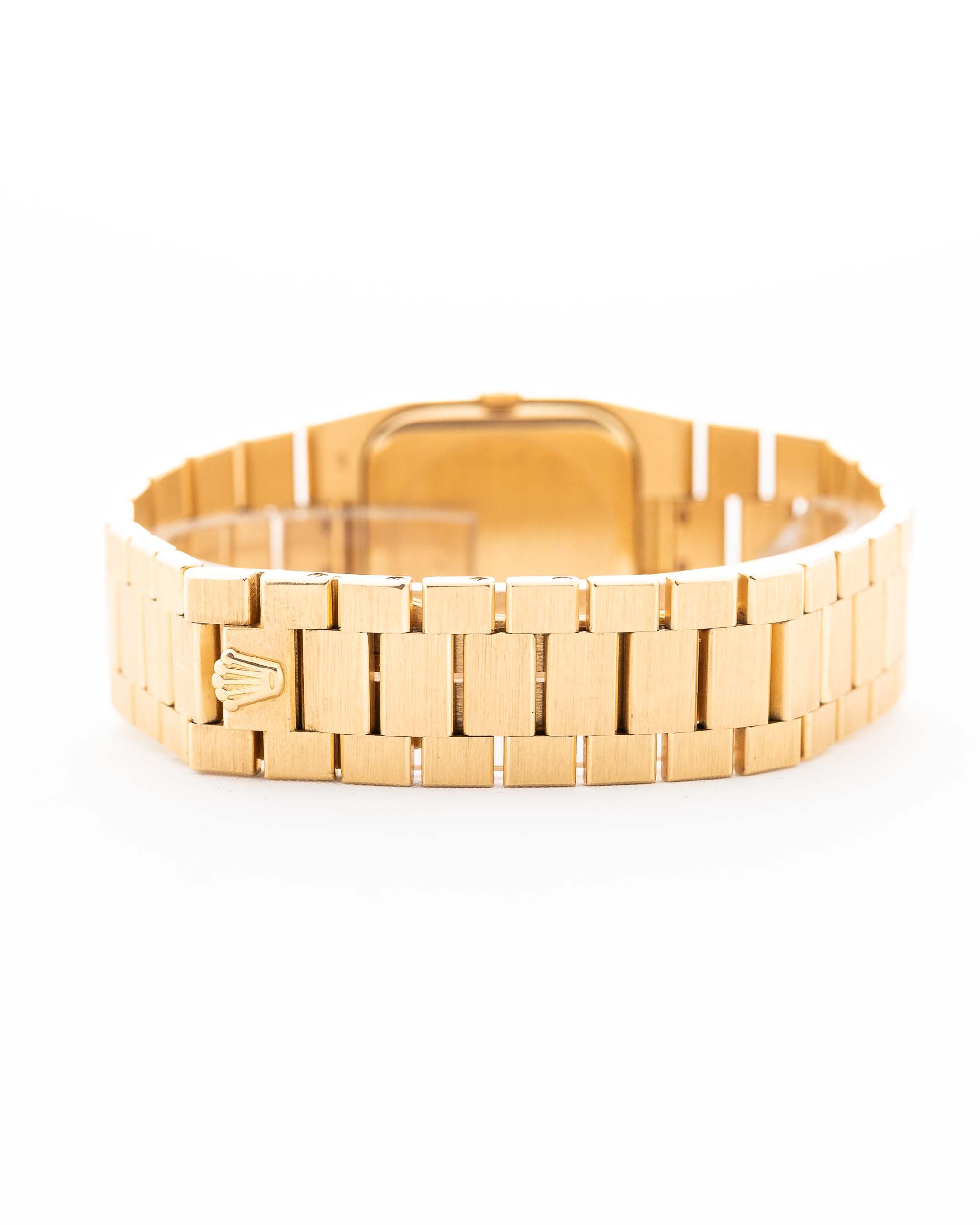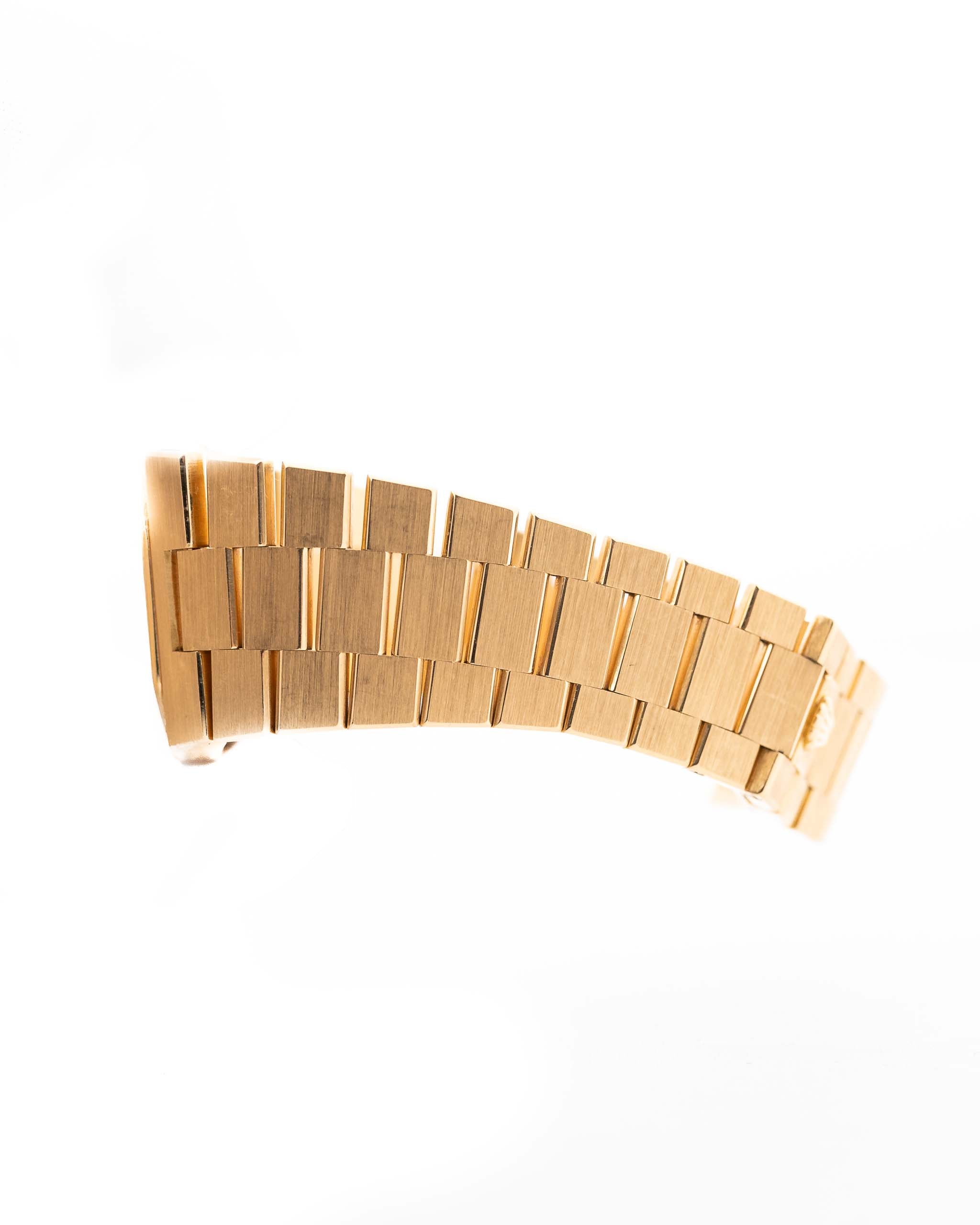 The Rolex Cellini line showcases the dressier side of Rolex compared to its more well-known sport models. Our Ref. 4350 is fitted in a 18k-yellow-gold octagon-shaped case, which is an unusual case shape for Rolex, but at the same time very iconic for this model. It comes with a perfectly fitting 18k President bracelet with 18k folding clasp and in fabulous condition.